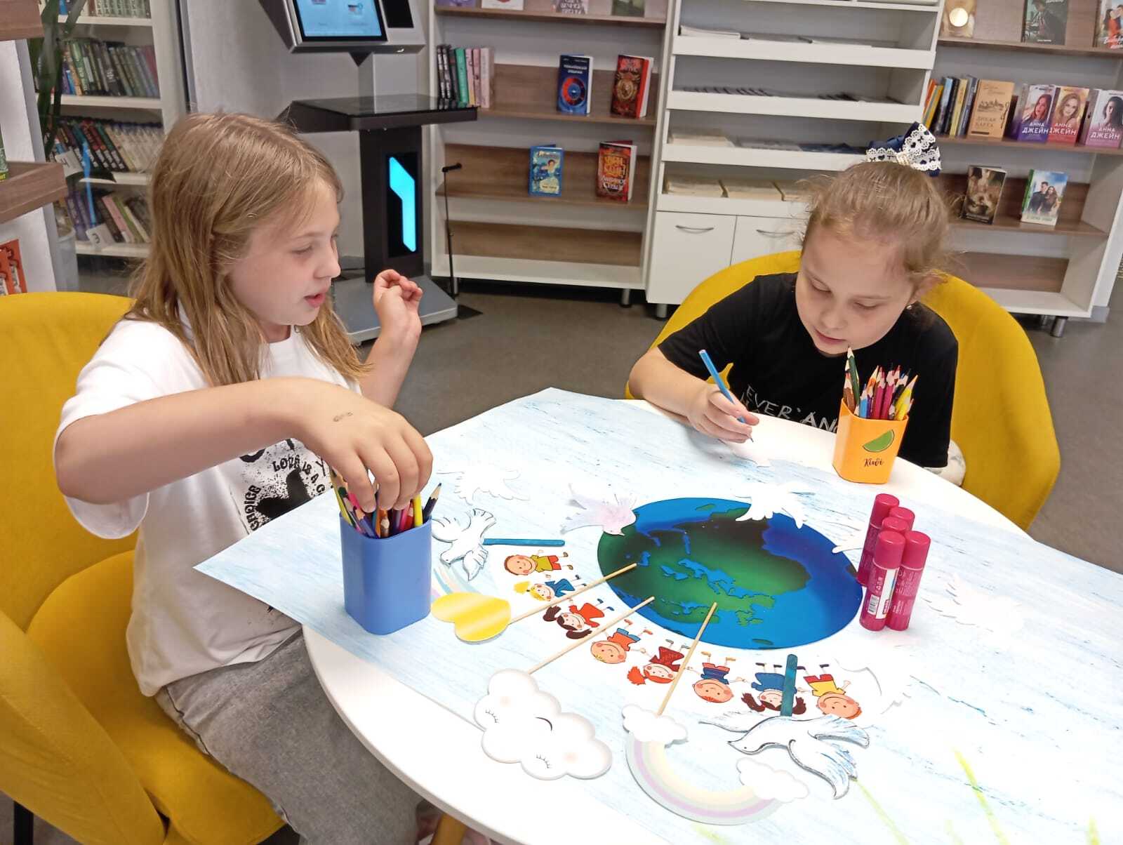 В программе акции был показан тематический информационный видеоряд а после желающие приняли участие в мастер-классе по бумагопластике, на котором сделали своими руками белого голубя – символ борьбы за мир и против насилия, которого прикрепили на импровизированный земной шар.